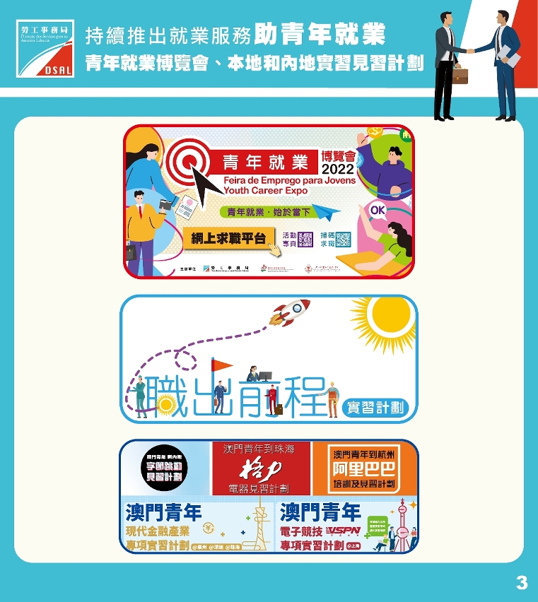 對於已畢業的本澳求職青年,勞工局自2020年起每年推出“職出前程”本地實習計劃,旨在讓求職青年通過在崗實務場景,獲取職場體驗,加強其職場競爭力。